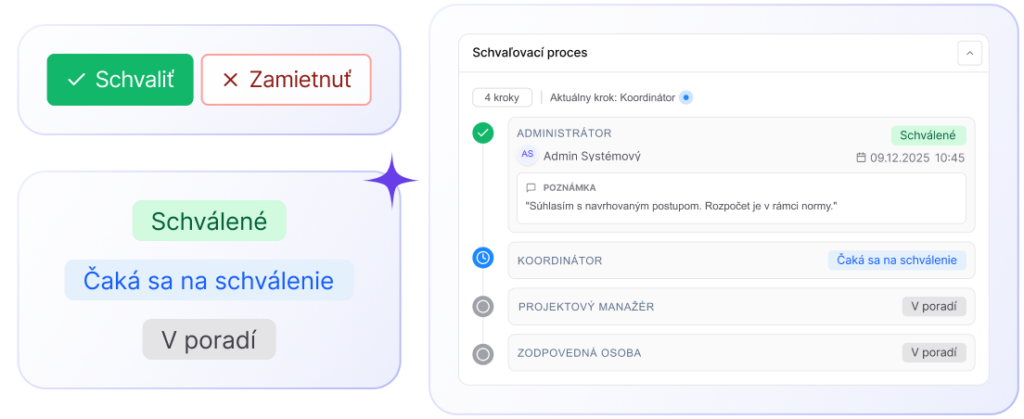 Definovanie vlastných schvaľovacích procesov s možnosťou nastavenia jednotlivých krokov schvaľovacieho procesu