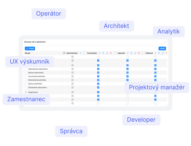 Komplexná správa prístupových práv, ktorá umožňuje nastavovať oprávnenia jednotlivých používateľov podľa ich rolí v systéme. Funkcia zabezpečuje, aby mal každý používateľ prístup len k tým funkciám a dokumentom, ktoré sú pre jeho prácu nevyhnutné. Okrem toho umožňuje sledovať aktivitu používateľov prostredníctvom auditných záznamov, čo zvyšuje úroveň bezpečnosti pri práci s citlivými údajmi.